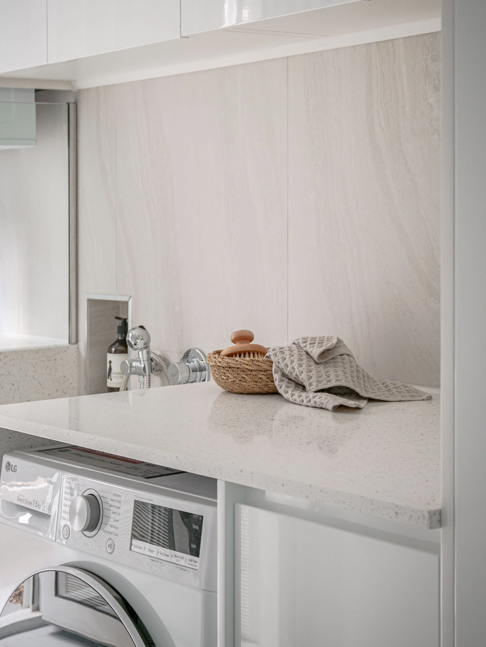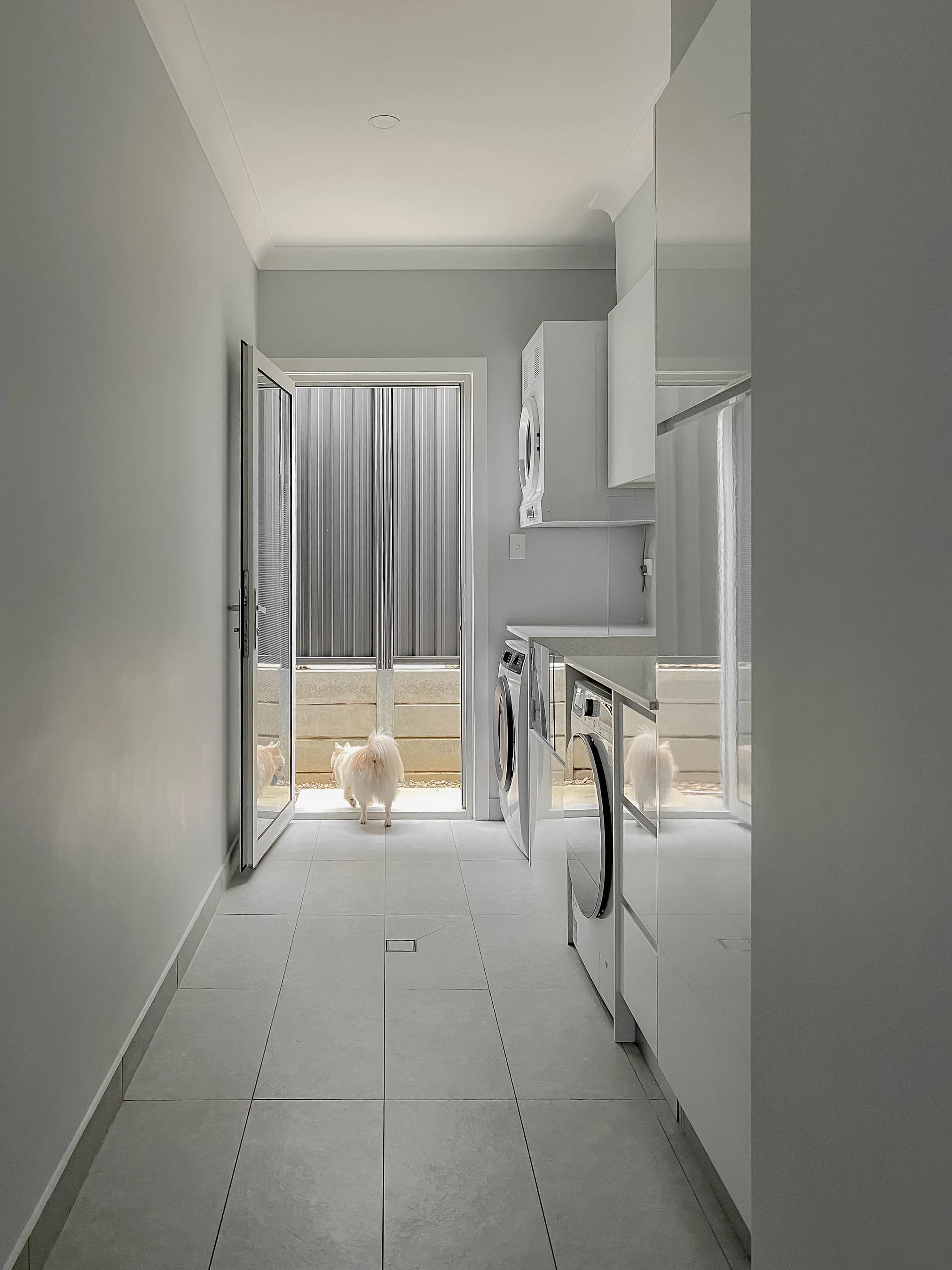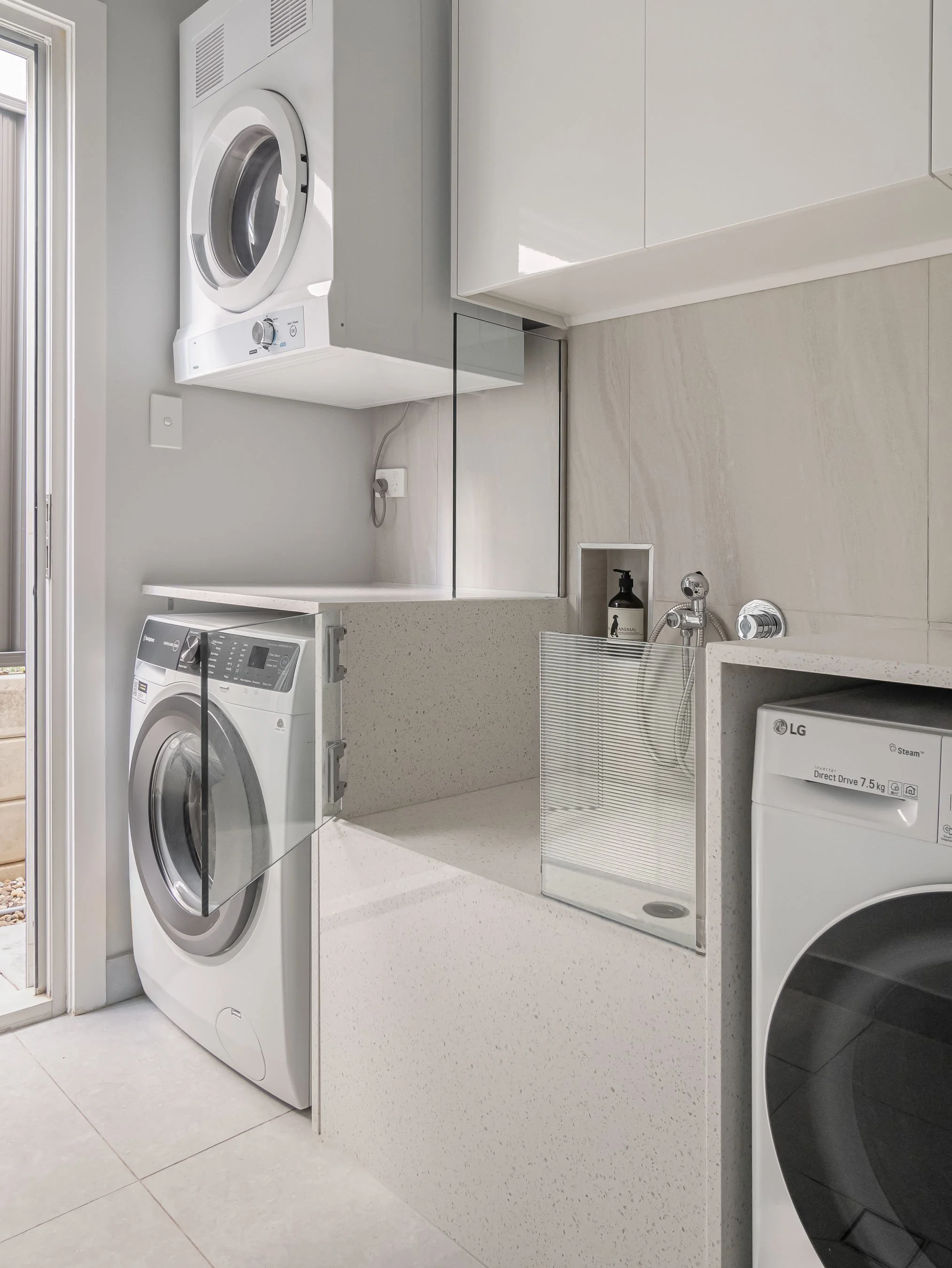 To make things even more convenient, we included an extra washer dedicated to all the dog-related laundry, along with plenty of bench space for sorting, folding, or simply keeping things organized.