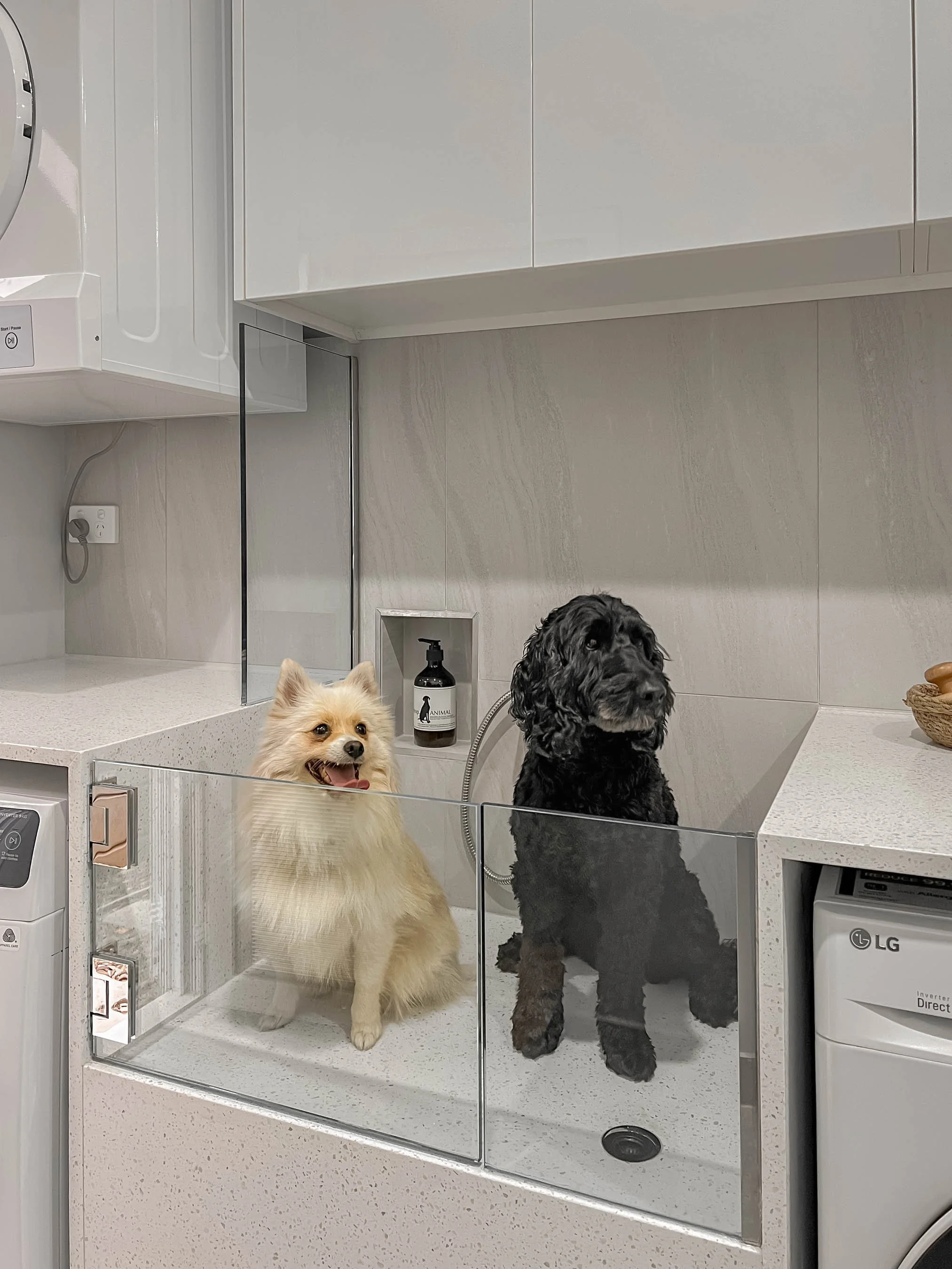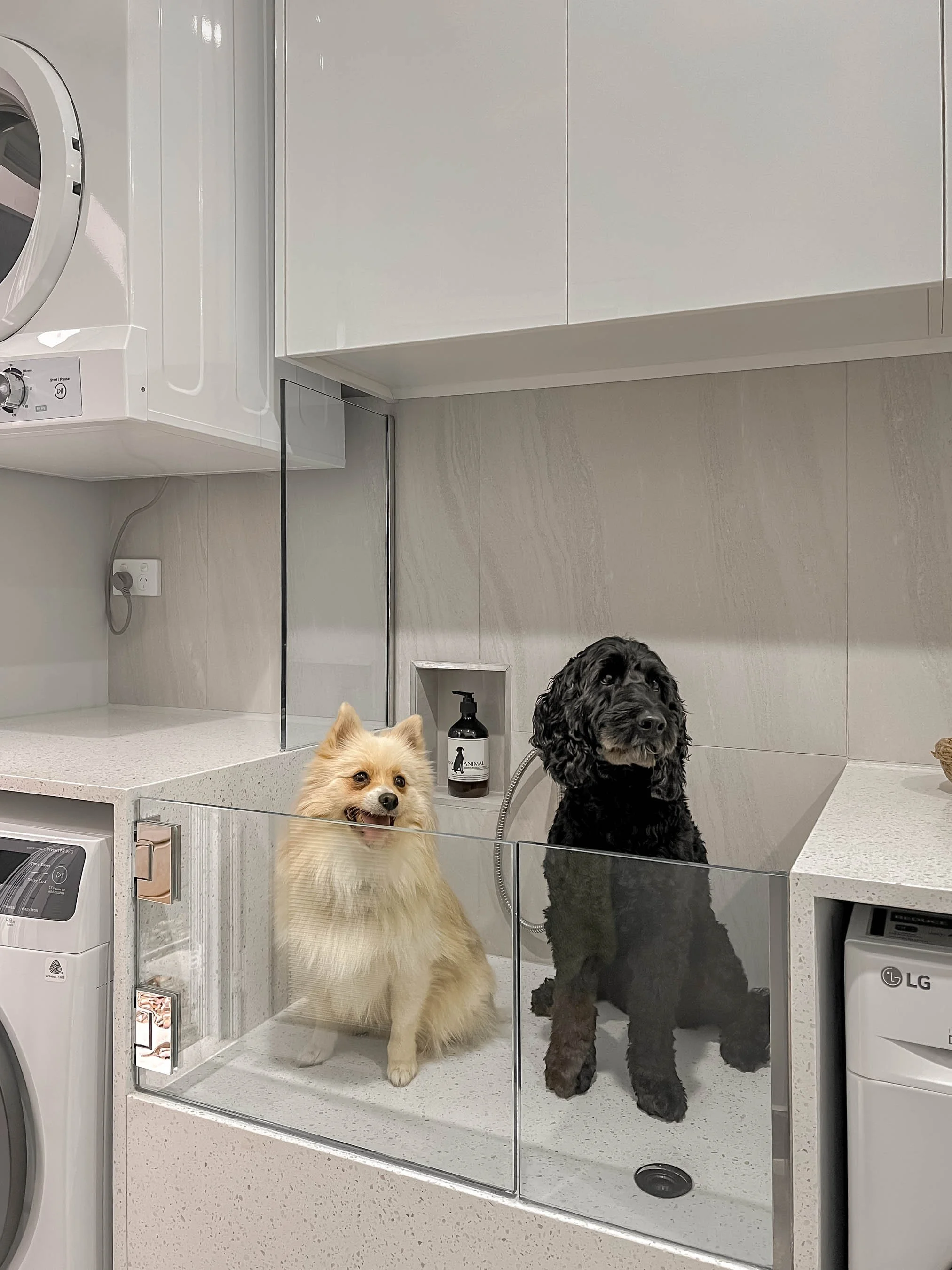 Welcome to a home designed with your furry family members in mind! This lovely couple, who recently purchased their new place, wanted a space that catered to both their lifestyle and the needs of their dogs. Before they even moved in, we added a thoughtfully designed dog bath—a practical feature that makes pet care a breeze.