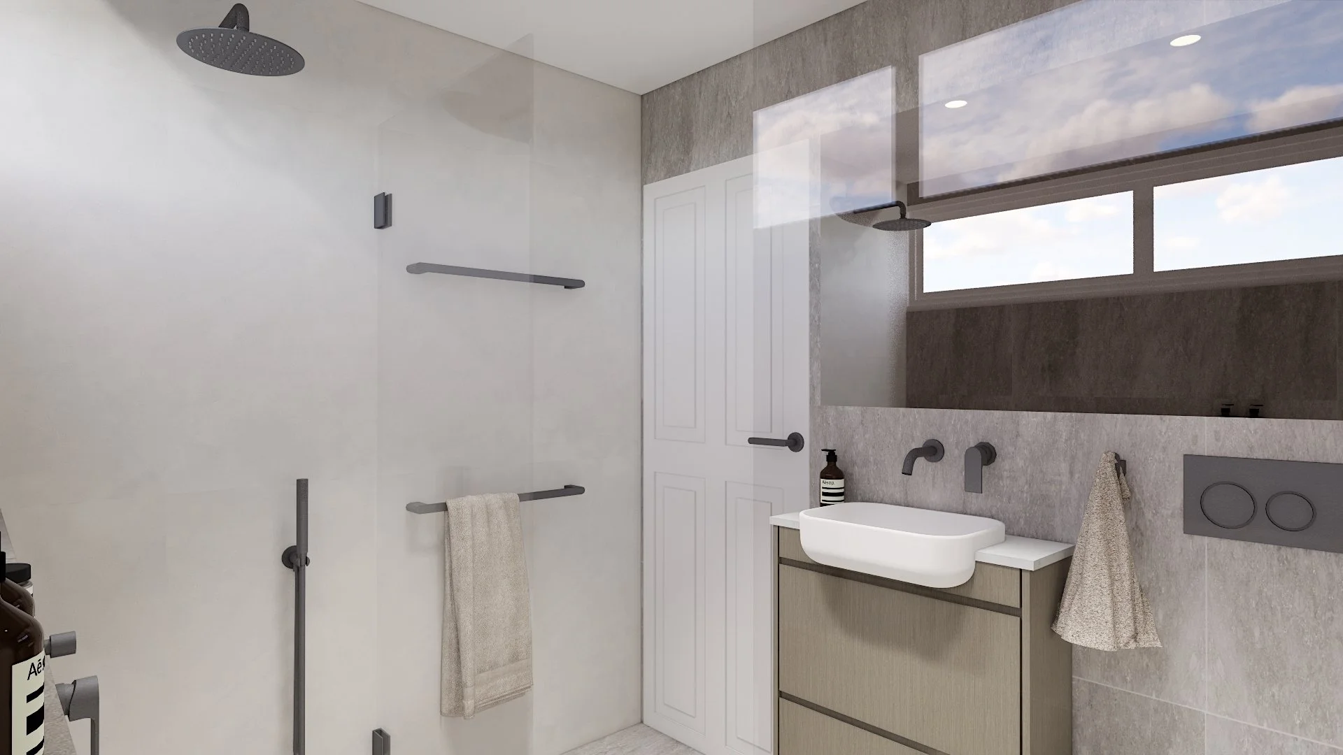 For this renovation, our clients envisioned a bathroom with two separate showers, alongside a clever powder room that could also function as a laundry.